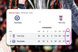 约克城不败即可升级,罗奇代尔必须争胜,但无论如何都将有一支单赛季超过100分的球队去参加附加赛,甚至无法升级。